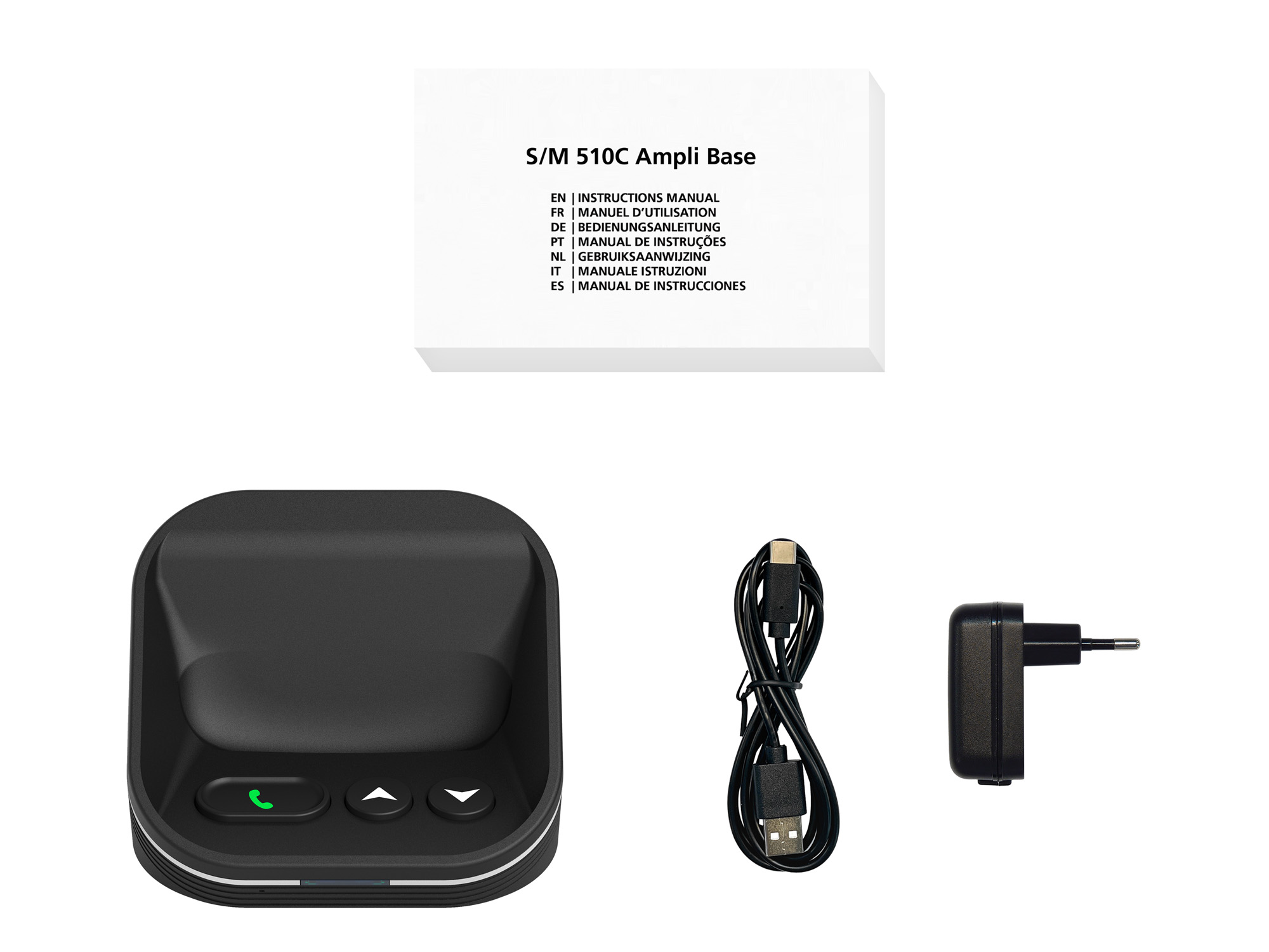 Además de sus funciones de audio, la Ampli Base actúa como estación de carga adicional, complementando la base de carga suministrada con el smartphone S510C. Dos estaciones de carga para una mayor flexibilidad de uso.